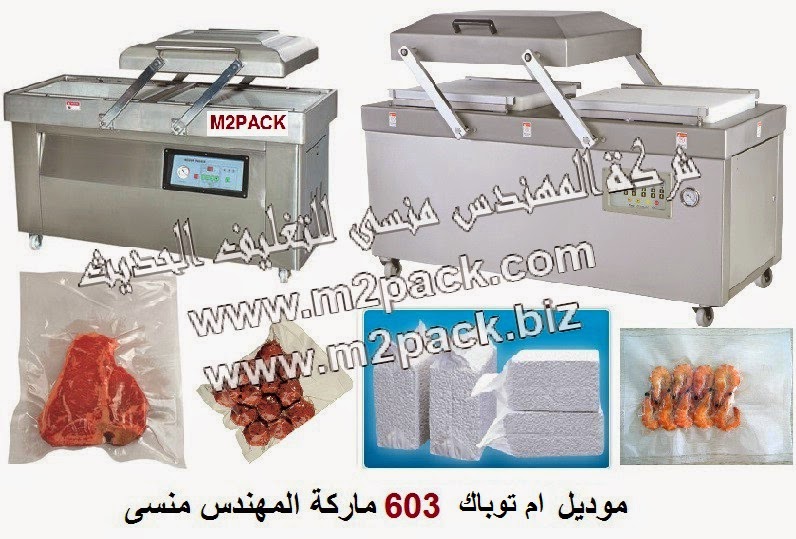 نقدم لكم نحن شركة المهندس منسي للصناعات الهندسية والتغليف الحديث شرح موجز لماكينة فاكييوم لشفط و تفريغ الهواء من الاكياس صناعية حجرتين بمضختين موديل ام تو باك 603 ماركة المهندس منسي حيث تتميز الة الفاكييوم لشفط و تفريغ الهواء من الاكياس صناعية حجرتين بمضختين موديل ام تو باك 603 ماركة المهندس منسي بالتشغيل الأوتوماتيكي لتفريغ الهواء من الاكياس ثم لحام الكيس بالضغط الحراري و التبريد الذي يستخدم في تعبئة الأطعمة و الادوية و كل المنتجات التي تحتاج التغليف بشفط و تفريغ الهواء فاكيوم الاكياس حيث ان هذه الطريقه تمنع تلف الاطعمة و المنتجات مثل اكياس السواك و اكياس التمر و اكياس الدواجن و اكياس اللحوم و اكياس الرنجة و اكياس السيمولينا و جميع المنتجات التي تحتاج فاكيوم لو كتبنا المنتجات التي تحتاج تغليف بفاكيوم الاكياس لما اكفانا مجلد مساحته عشرة الاف صفحة فهذه الطريقه في التعبئة والتغليف تمنع الاكسده وتغير اللون و تمنع تطور البكتريا وتحافظ علي المنتج من التلف وكل ما يتلف المنتج و يحافظ علي المنتج من حيث اللون و الجوده المطلقه تستخدم هذه الماكينة ايضا في عدة مجالات منها مثلا المستحضرات الطبية العبوات الدوائيه البشريه و العبوات الدوائية البيطريه عبوات المياه و الصناعات الالكترونية و الكيماوية تستخدم هذه الآلة لمنع الأكسدة والتعفن و التآكل و الرطوبة مع المحافظة على جودة المنتجات لأطول فترة تخزين ممكنة تقوم هذه الماكينة بملأ أكياس التعبئة ببعض أنواع الغاز مثل النيتروجين بعد تفريغ الكيس من الهواء . تتميز هذه الآلة بالتشغيل الأوتوماتيكي للتفريغ اللحام و التبريد الذي يستخدم في تعبئة الأطعمة المستحضرات الطبية المياه الصناعات الالكترونية و الكيماوية و المبيدات و البودره و غيره